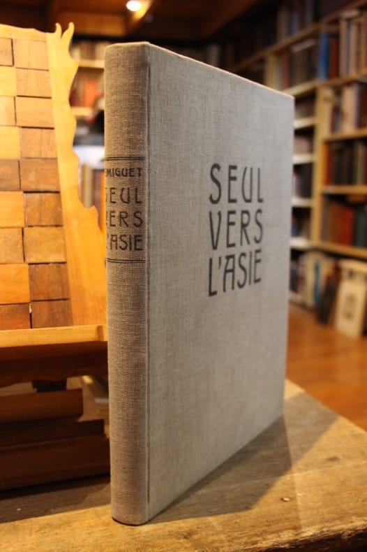 Edition originale tirée à 100 exemplaires numérotés sur Hollande avec quatre eaux-fortes originales dans un portefeuille signées par l'artiste.Relation de voyage Paris-Bombay, aller-retour, de 1926 à 1930, à bord du camion atelier "l'Ouvège" crée par Marcel Amiguet et construit par les ateliers Renault.