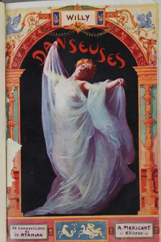 Edition originale enrichie d’un envoi de Willy. Danseuses chinoises, japonaises, égyptiennes, "judéennes", grecques, romaines, indiennes, indo-chinoises et occidentales, nues ou demi-nues. Très bon état d’occasion