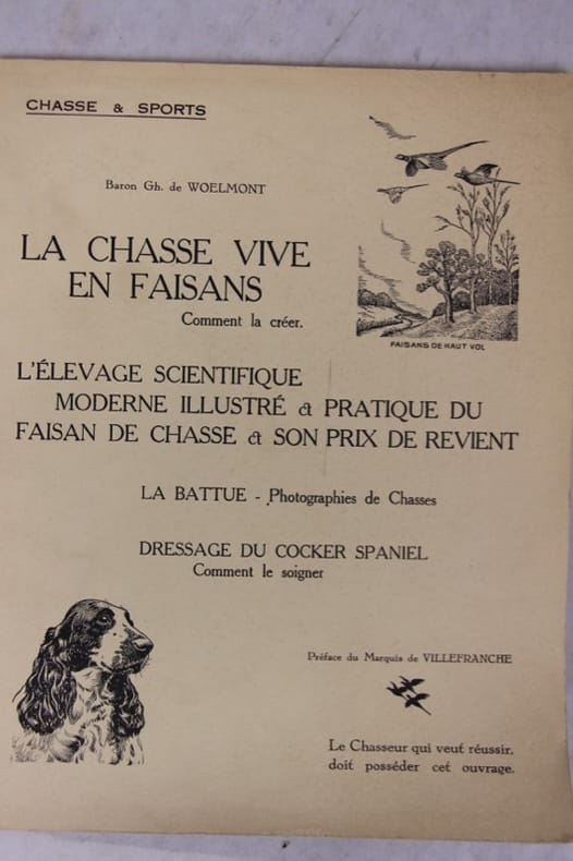 L'elevage scientifique moderne illustre et pratique du faisan de chasse et son prix de revient.- La Battue : photographies de chasse.- Le Dressage du Cocker Spaniel. Comment le soigner. Très bon état d’occasion