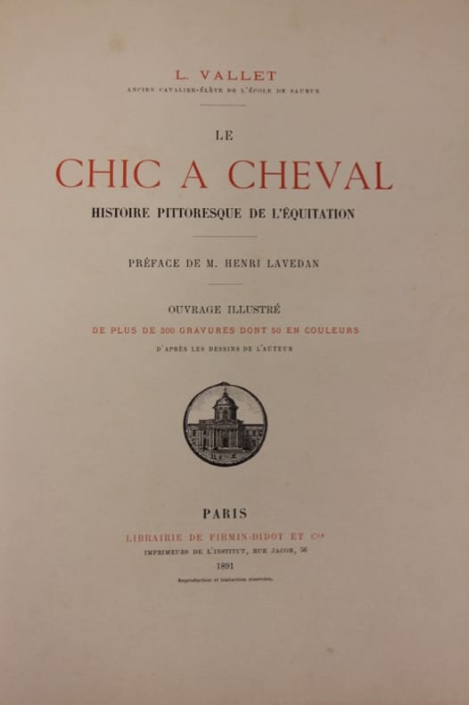 Très bon exemplaire de ce classique. Louis Vallet (1856-1940) a servi dans la cavalerie avant de se consacrer au dessin et à la peinture, notamment hippique, mais également pour le théâtre. Très bon état d’occasion