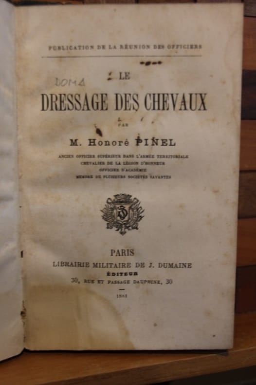 Traité des résistances du cheval. Méthode raisonnée de dressage des chevaux difficiles au moyen de la cravache ... et Philosophie hippique déduite de la physiologie et de la mécanique animale. Edition revue et considérablement augmentée. (Paris: Berger-Levrault, 1889). [M.C.: hippisme, équitation]
