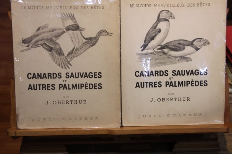Ouvrage qui met à l’honneur les magnifiques palmipèdes, dont notamment le plus beau de tous, le Canard. Il détail les moeurs, l’origine, les migrations et le rôle utile ou nuisible de chaque espèce (oies, sarcelles, cygnes, macreuses, etc.). Mouchon, 1207.