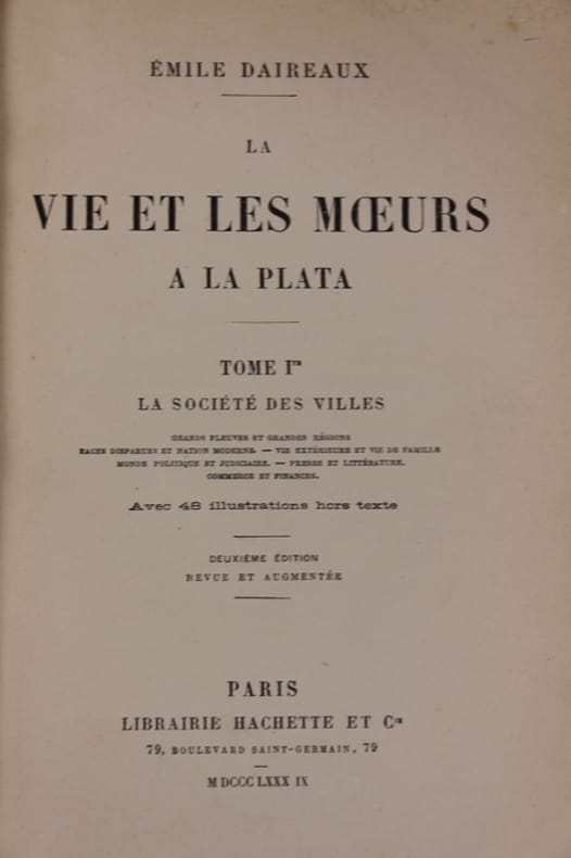 Deuxième édition, revue et augmentée de cette monographie très complète. Émile Daireaux (1843-1916) s'était éxilé en Argentine pour gérer les affaires familiales. Il y fit une brillante carrière d’avocat et de journaliste. Très bon état d’occasion