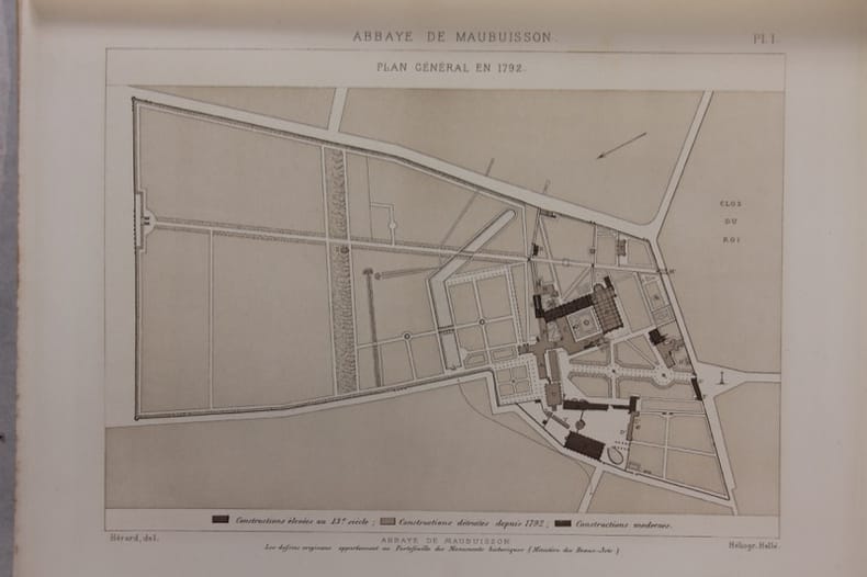 Tiré à 250 exemplaires seulement. Ces études font partie d'un travail complet sur les abbayes de l'ancien diocèse de Paris. Contient : Plan général de l'abbaye de Maubuisson, indiquant les constructions élevées au XIIIe siècle, les constructions démolies et celles de l'époque moderne (6 planches) ; Plan général de l'abbaye de Vaux-de-Cernay, comprenant les constructions élevées aux XII et XIIIe siècles, celles démolies depuis 1785, et celles de l'époque moderne. Tombes trouvées dans le monastère (9 planches) ; Plan général, état ancien et restauration de l'abbaye de Notre-Dame du Val (Seine-et-Oise), fondée en 1136 (8 planches) ; Port-Royal des Champs (4 planches). Bel exemplaire à l'état de neuf.