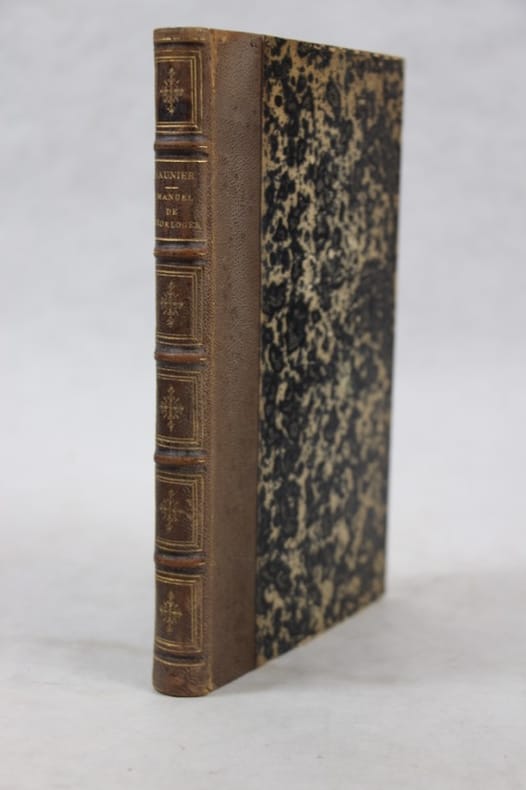 Bureau de la Revue Chronométrique 1870 In-8, demi-chagrin havane, dos à nerfs, caissons ornés de cadres et de petits fers dorés, VI-264 pp. 8 planches repliées in fine, table des matières. rousseurs marginales sur les deux dernières planches.