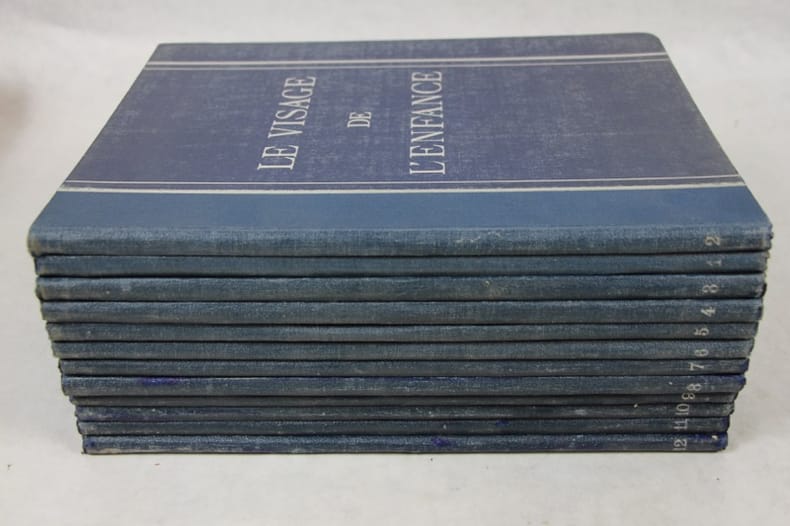 Paris Horizons De France 1937 In Quarto Demi-reliure en mouton bleu marine et percaline titrée d'argent et numérotée au dos . Très belle étude sociologique , ethnologique et anthropologique qui s'étend aux enfants des colonies . Richement illustrée à chaque page par de nombreuses photographies en noir et blanc . Les 12 volumes : 405 p. + 384 p. en pagination continue , total 9 kg 100 gr.