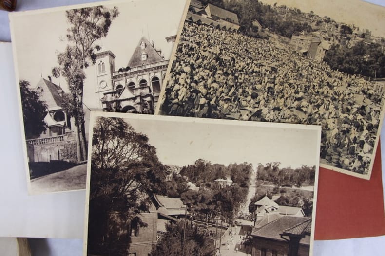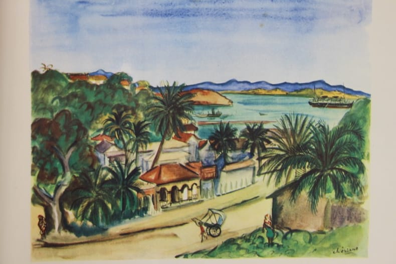 Charmantes compositions africanistes de Cherie Anne Charles, dites Chériane, élève d’Othon Friesz. On joint 3 vues photographiques de Tananarive à l’époque (23x30), G. Leygoute. Bon état d’occasion