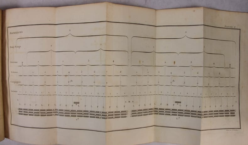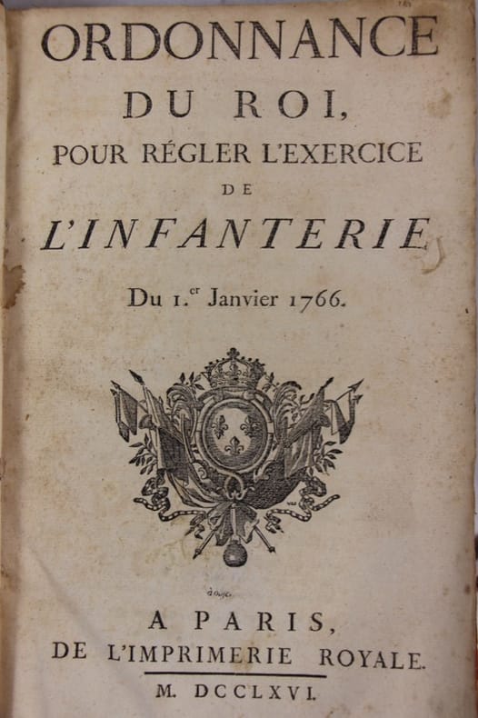L'ordonnance de 1766 est le résultat des corrections de celle de 1764 à laquelle on reprochait de n'avoir pas rompu assez complètement avec les complications inutiles et les manoeuvres surannées des derniers règlements. Le règlement de 1766 ajoute notamment aux différents feux admis par le précédent le feu de chaussée et le feu de rang. Bon état d’occasion