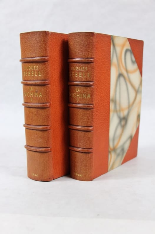 Un des 930 exemplaires sur Vélin Pur fil; illustré de 70 burins originaux de Pierre Dubreuil dont 2 frontispices et 5 hors-textes. "En relatant le triomphe de Nichina, c'est à la femme immorale que Rebell rend hommage. Sans doute l'une des rares qu'il traite avec un égard véritable." (Mercure de France). (D2)