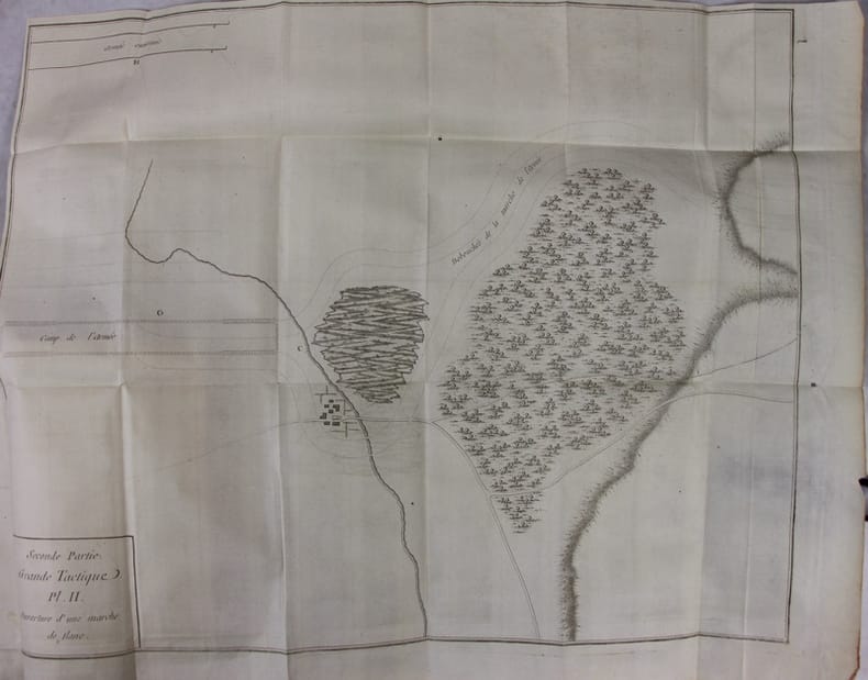 Reliure plein veau, dos à nerfs orné orné, tranches marbrées. Complet des 27 planches dépliantes de tactique militaire.