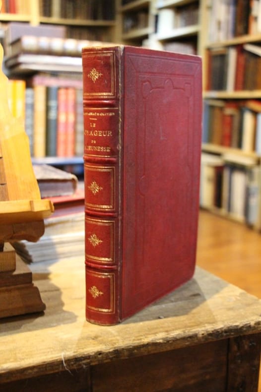 Morizot, Libraire-éditeur - In-4. Reliure éditeur demi-chagrin rouge cerise, dos à faux-nerfs, caissons ornés de petits fers dorés, tête dorée, VIII-645 pp., 22 gravures hors texte sous serpentes, dont 16 en couleurs par Rouargue Frères. Reliure frottée, rousseurs marginales. Assez bon exemplaire.