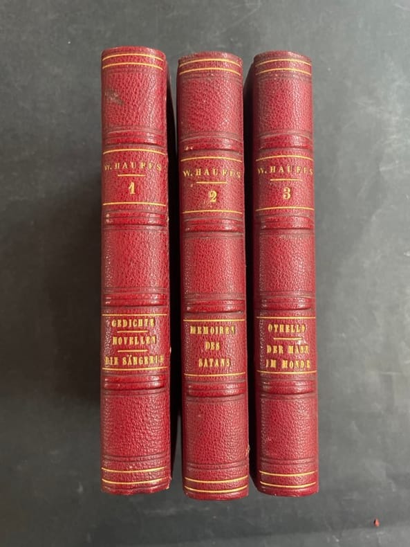 Stuttgart, Rieger Verlag 1854 3 volumes. In-12. Reliures demi-chagrin rouge, dos à nerfs, frontispices, 414-424-392 pp. Bons exemplaires.