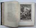 Imprimerie de J. M. Eberhart 1810 2 tomes, in-4, reliure demi-basane noir à coins, plats jaspés écaille de tortue, dos à nerfs et caissons ornés, avec titre et tomaison dorés, tranches marbrées, 72 LLXXII estampes gravées sous serpente, d’après les dessins de Charles Monet par J. B. Tilliard, 255 + 240 pp. Coiffes et coins légèrement frottés, rousseurs éparses