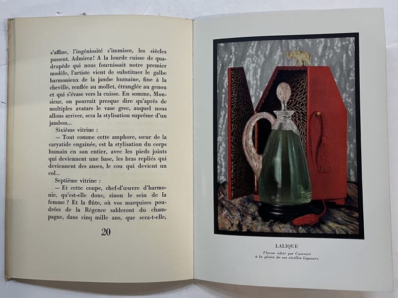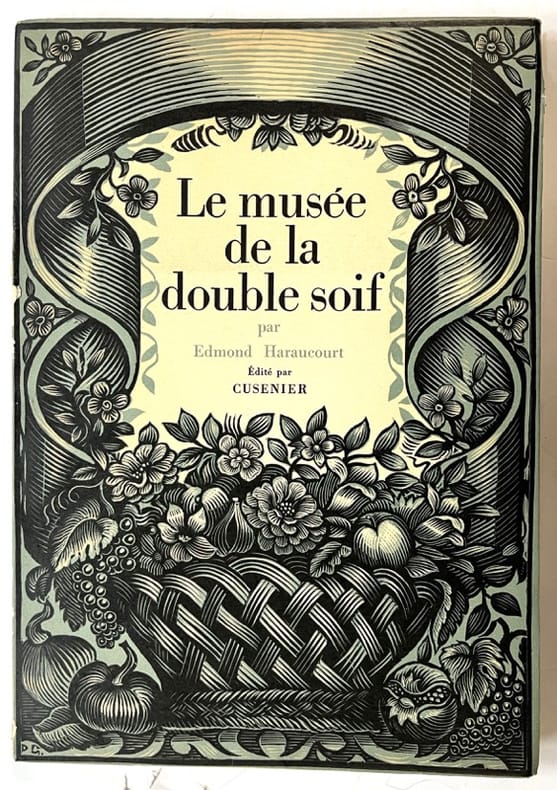 Edité par Cusenier à la gloire de ses vieilles liqueurs et illustré de trois hors-texte en couleurs et de gravures sur bois par Demetrius Galanis présentant les flacons crées par Lachenal, Lalique, Gallé et Herbst.