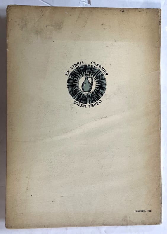 Cusenier, impr. Draeger Frères 1925 In-4. Broché, couverture illustrée et rempliée, 42 pp., 3 planches en couleurs hors texte, gravures sur bois dans le texte. Petit manque en tête de dos, intérieur très frais.