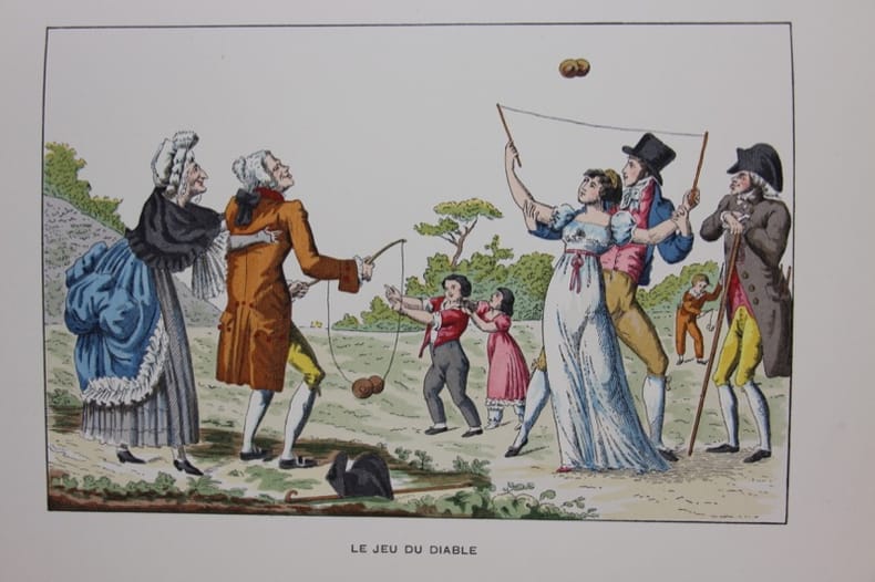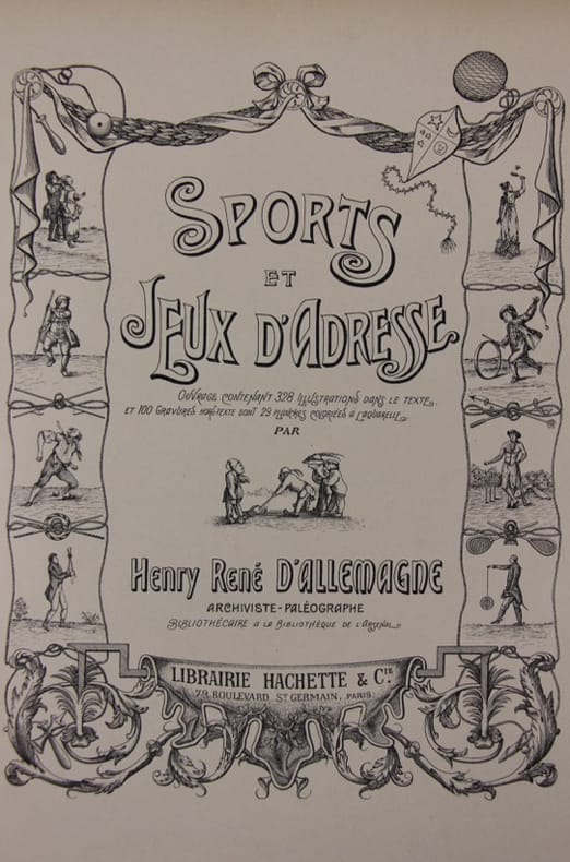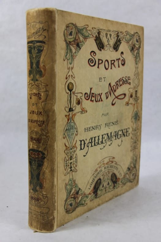 Hachette, Paris, s.d. (1903). In-4 (mm. 320x245), legatura edit. figurata a colori, tagli super. dorati, pp.(4),382, magnificamente illustrato da 328 figure xilografate nel t. e da 100, a p. pag., di cui 29 f.t. coloriées à laquarelle, che riproducono per lo più immagini di dipinti o antiche stampe. Affascinante storia dei giochi: dai premiers jeux de l'enfance (le cerceau, le cerf-volant, le criquet et le batonnet, la toupie, ecc.) ai jeux à courir (les quatre coins, de barre, de cache-cache), d'adresse (de bague, le bilboquet, de l'émigrette..), de balle (de paume, du volant..), de boules (de billard, les quilles, du Siam), gymnastiques (le saut, le cheval fondu, la lutte, la danse, l'escrime..). "Edizione originale".Cfr. Lorenz,XVIII, p. 20. Esemplare molto ben conservato.