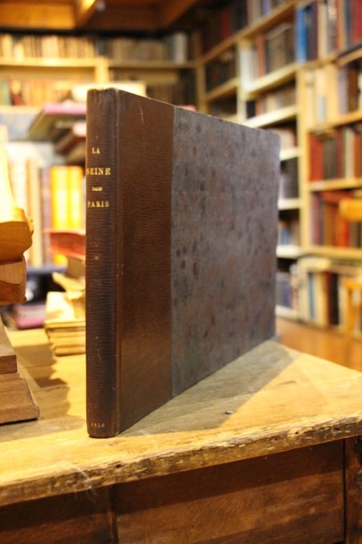 Paris, La Carte nouvelle, ateliers Longuet, sans date [vers 1910] 1910 In-4 oblong, bradel demi-maroquin brun peigné, couvertures imprimées de l'éditeur. Album composé de 32 planches, toutes sur onglet, montrant des reproductions photographiques relatives à l'inondation de Paris. Bel exemplaire.