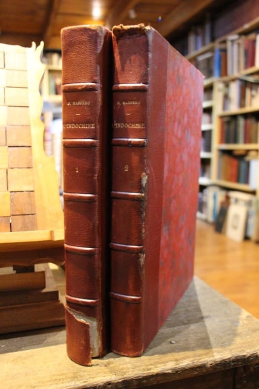 Paris et Bruxelles, G. Van Oest, impr. Arrault et Compagnie, à Tours 1930 2 volumes.In-4 32,5 x 25,5 cm. Brochés, couverture s briques rempliées, auteur & titre en noir sur les dos et les premiers plats ornés d’un décor indochinois doré, XXII-354-300 pp., 230-155 figures dans le texte, 24-24 planches hors texte, 3 cartes en noir, 2-5 cartes en couleurs cartes placées à la fin des volumes, bibliographie, index, tables. Mors fendillés, intérieur frais.