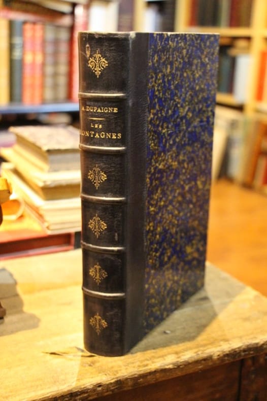 Tours, Alfred Mame et fils, éditeur 1877.IN-4 RELIE reliure moderne pleine toile beige (25,5 x 17 cm), 591 pp. Edition illustrée de 33 hors texte dont un frontispice et de 153 gravures dans le texte par Riou, Bayard, Weil, etc. Sept cartes en couleurs hors texte sous serpentes, dessinées par Dumas-Vorzet et gravées par Erhard. Sommaire: Introduction - Pays de plaines et pays de montagnes -Une science méconnue - Où sont les montagnes - Les formes des montagnes - De quoi sont faites les montagnes - L'origine des montagnes - La géologie - Deux pages de la Genèse - Les volcans - L'atmosphère et ses météores - La circulation des eaux - La démolition des montagnes - Les glaciers - La vie dans les montagnes - Conclusion. "Parmi les ouvrages de géographie et de géologie populaire de la fin du XIXème siècle (La Terre et les mers de Louis Figuiers, La Terre d'Elisée Reclus, La Terre, géographie physique et économique de Vidal de La Blache), celui de Dupaigne a fait date."