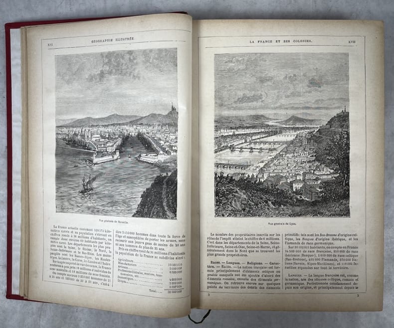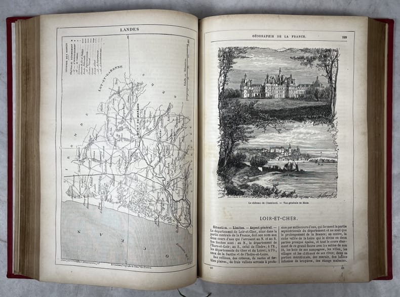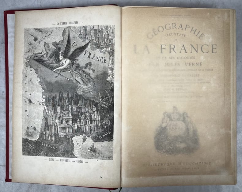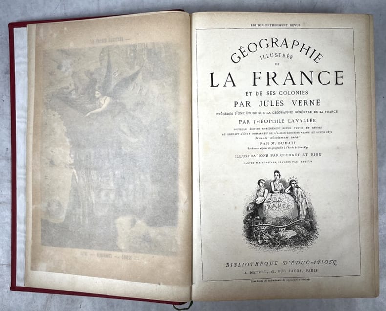 Paris, J. Hetzel, coll. « Bibliothèque d’éducation » 1876 In-4 29 x 21 cm. Reliure éditeur demi-chagrin grenat, dos à nerfs encadrés de fers dorés, tranches dorées, IV-775 pp., texte à 2 colonnes, nombreuses gravures et cartes. Intérieur tès légèrement et uniformément jauni, sinon bon exemplaire, gouttière très régulière.