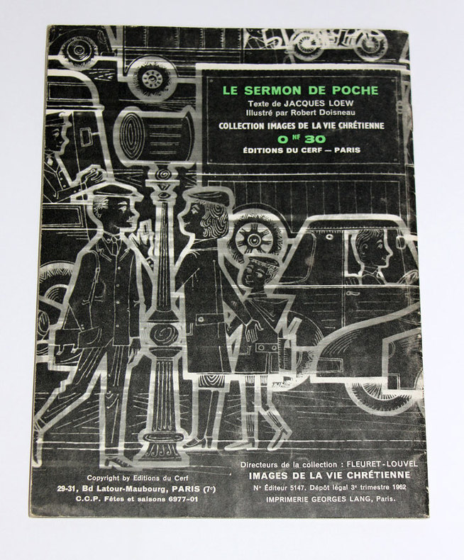 Paris, Edition du Cerf, 1962, in-8vo, 28 p. n.n. ill. de 15 images photogr. de Doisneau, brochure originale illustrée. Coin int. touché.