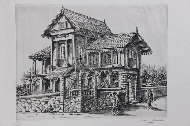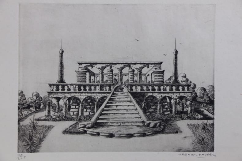 Onze belles eaux-fortes de URBAIN-FAUREC, représentant des paysages et des monuments de Madagscar, chacune signée par l'artiste au crayon, et accompagnée d'une serpente légendée. Tiré à 225 exemplaires, un des 100 sur Navarre Bon état d’occasion
