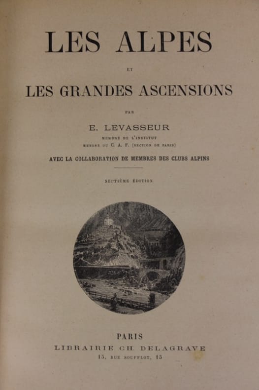 Paris, Delagrave, Paris, Delagrave1895 ; grand in-8, cartonnage percal. rouge de l’époque. VIII pp., 390 pp.Étude de toutes les chaînes des Alpes et histoire des ascensions célèbres : Saussure, Vallot, Martel, etc. - 75 illustrations, cartes, vues.