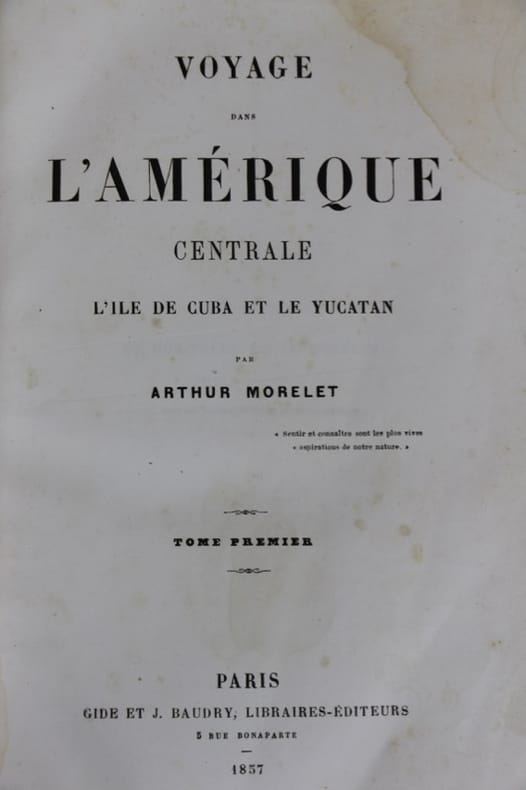Relation très vivante de cette exploration des régions indiennes encore méconnues du Yucatan, partagées entre le Mexique et le Guatemala, entreprise entre novembre 1846 et février 1848 par le naturaliste Arthur Morelet (1809-1892). Après deux mois à Cuba, il poursuit à travers le Yucatan et le Tabasco vers la jungle par la rivière Usumacinta puis la capitale Guatemala, livrant de précieuses observations. Peu courant. Bon état d’occasion