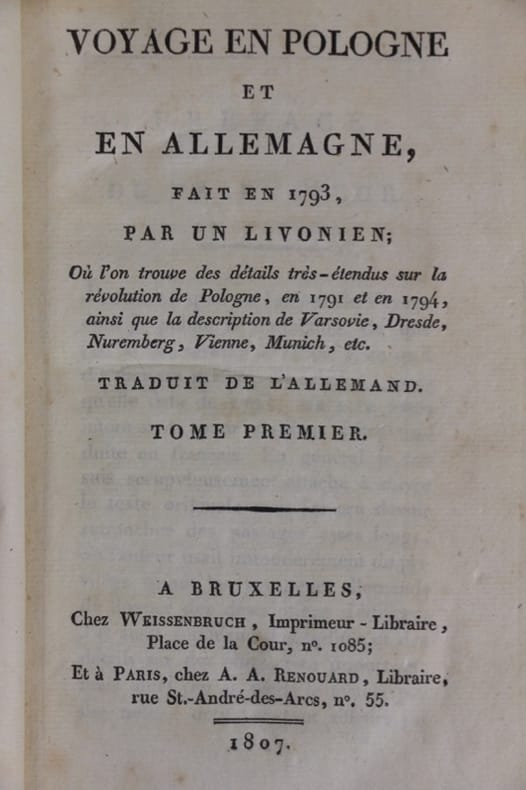 Une relation très précise par un témoin. Friedrich Schulz (1762-1798) avait précédemment témoigné des événements en France. Enseignant en Lettonie, il fut un temps député au parlement de Varsovie. Bon état d’occasion