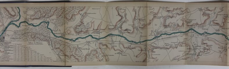 Paris : aux bureaux du " Yacht ", [1888] Portefeuille in-12, percaline éditeur ornée, une carte dépliante 163 cm x 16,5 cm rehaussé en deux couleurs. Très bon exemplaire.