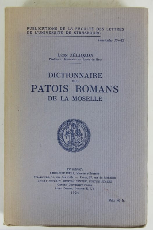 La société d'Histoire et d'Archéologie lorraine s'est occupée dès les premiers moments de son existence à l'étude de nos patois. Fidèles à ses principes et pour sauver de l'oubli une langage qui se perd, elle a décidé de publier un Glossaire des patois romans de la Moselle. Elle chargea l'auteur de ce travail. Achevé en 1914,la guerre empêcha l'impression reportée en 1924. (d'après la préface) Dos bruni, bonne condition. - Frais de port : -France 6,9 € -U.E. 11 € -Monde (z B : 18 €) (z C : 31 €)