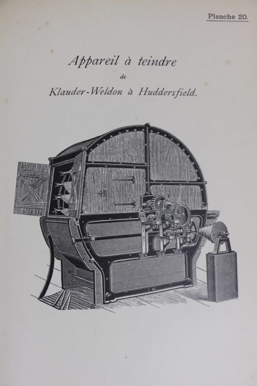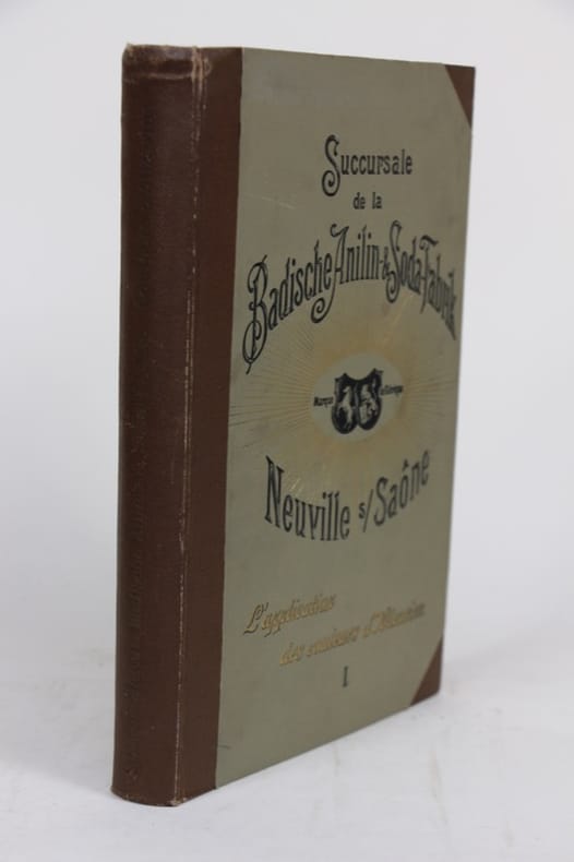 Neuville-sur-Saône, Succursale de la Badische Anilin & Soda-Fabrik 1900 In-4. demi-percaline éditeur havane, plats toilés vert décoré noir et or sur le premier plat, VIII-265 pp., 2 gravures sous serpente & 23 planches de machines in fine. Légères usures. Bon exemplaire.