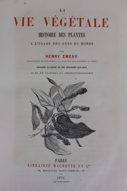 Bel ouvrage de vulgarisation : la plante, sa structure, son organisation et sa vie ; mœurs et physionomies végétales ; botanique appliquée. Henry Emery (1828-1899) était professeur de botanique à la Faculté des Sciences de Dijon. Spectaculaire cartonnage de Souze Bon état d’occasion
