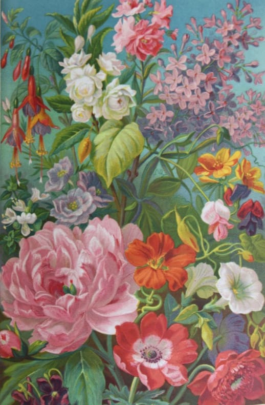 P., Hachette 1878 Grand in-8, cartonnage éditeur rouge noir et or, illustré de grandes compositions de fleurs, feuilles et fruits, tranches dorées, 807 pp. et 439 figures gravées sur bois et 10 chromolithographies peintes par Fuchs. Petit accroc en coiffe de tête, sinon très bon exemplaire.