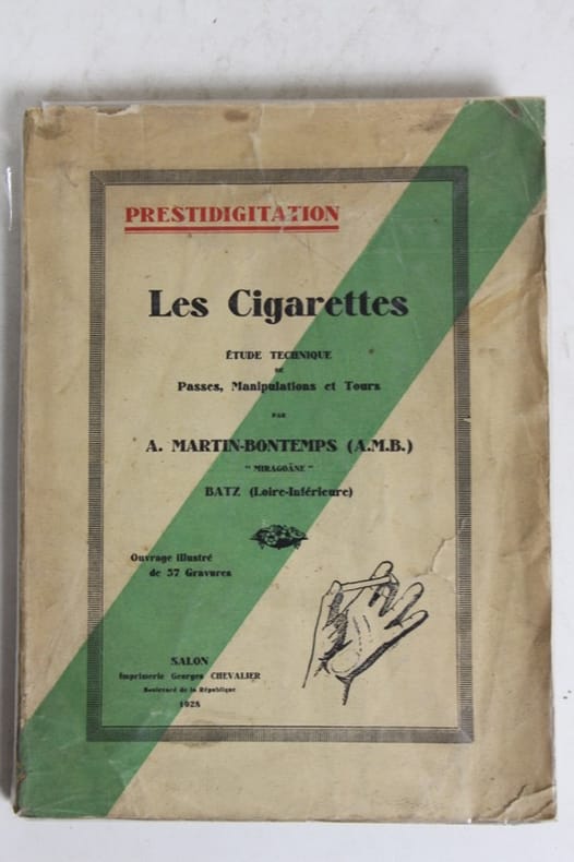 Tirage limité à 500 exemplaires. Celui-ci signé par l’auteur. Disparitions, passes, manipulations et principaux tours pouvant s’exécuter avec des cigarettes ordinaires. Peu courant. Bon état d’occasion