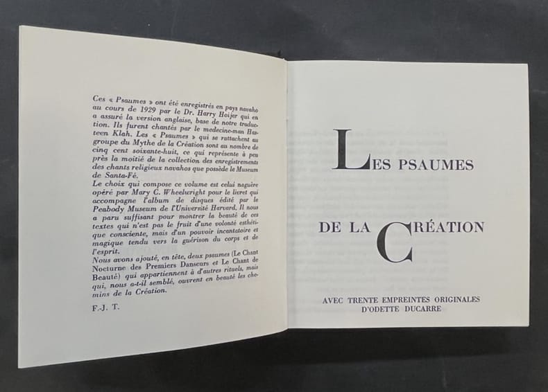 Robert Morel, impr. Aubin, à Ligugé 1969 In-16 15 x 14 cm. Reliure éditeur pleine toile noire des ateliers Mellottée, à Limoges, premier plat sous un relief de sable réalisé dans l’atelier de Jacques Le Roux, à Cornillon, selon la maquette d’Odette Ducarre, 217 pp., note du traducteur. Exemplaire en très bon état.