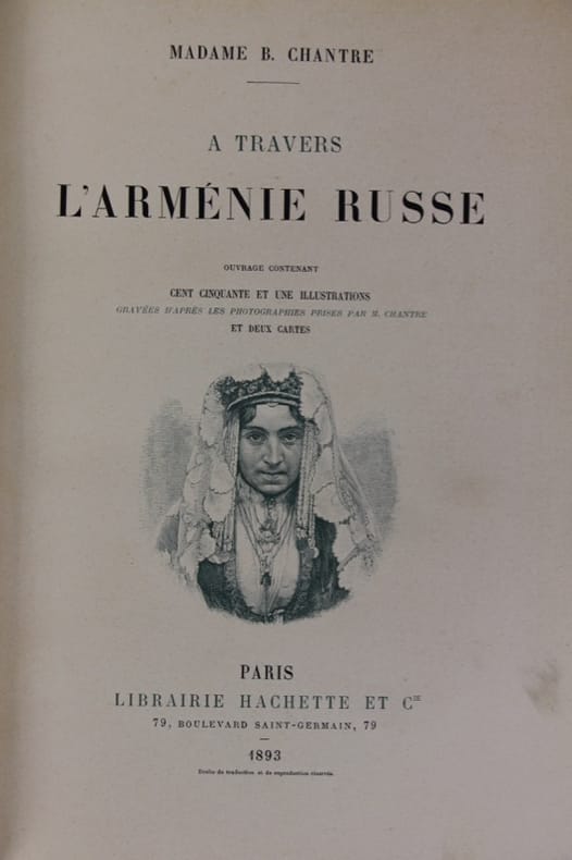 Madame B. CHANTRE, née Jeanne Bellonie BOURDARET, accompagne son époux Ernest Chantre (1843 - 1924), naturaliste, anthropologue et archéologue, spécialiste du Caucase, de l’Arménie et de l’Anatolie. Il effectue en compagnie de son épouse de multiples voyages en Asie Mineure, en Arménie et en Anatolie. Il est également photographe. Bon état d’occasion
