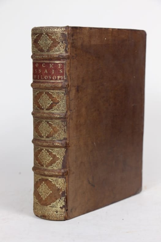 à Amsterdam, Amsterdam, chez Henri Schelte 1700 Fort in-4, plein veau havane époque, dos à nerfs encadrés de fers dorés, pièce de titre maroquin rouge, roulette dorée sur les coupes, portrait gravé de Locke en frontipice, [52] -936- [20] pp. Ex-libris de Jean François Gillet, écuyer. Une soigneuse restauration au titre, sans atteinte au texte. Légères usures. Bon exemplaire.