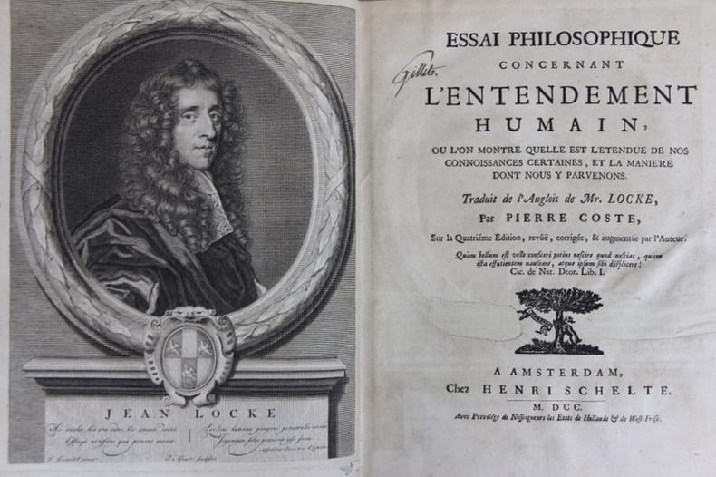 Édition originale de la traduction par Pierre Coste de ce traité de John Locke (ici francisé en “Jean Locke”), son oeuvre maîtresse et l'un des textes majeurs de l'empirisme. Pierre Coste joua un rôle fondamental dans la découverte de l’empirisme anglais par les philosophes des Lumières. Bon état d’occasion