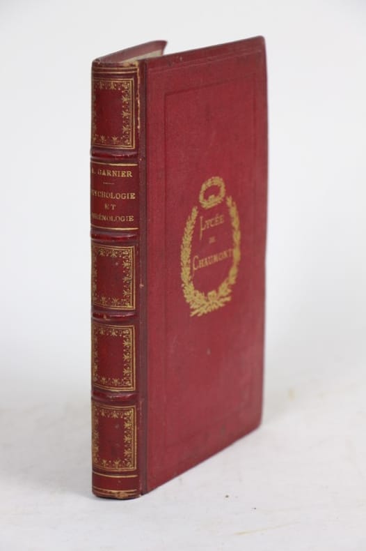 ---- EDITION ORIGINALE ---- BEL EXEMPLAIRE ---- "A. GARNIER, (1801/1864), fut le successeur de Jouffroy à la Sorbonne... Il fait reposer toute la philosophie sur la psychologie... Dans cet ouvrage A. GARNIER critique avec justesse les erreurs de GALL et de SPURZHEIM sur la nature et le nombre des facultés de l'esprit". (J. Lefranc in Dictionnaire des philosophes & Vapereau Dictionnaire des philosophes ) ---- Cf. LANTERI-LAURA ---- Distinction de la psychologie et de l'organologie - Parallèle des théories psychologiques de Gall, de Spurzheim et des philosophes écossais- Méthode phrénologique, méthode psychologique - Distinction des facultés intellectuelles et des facultés affectives - Confusion phrénologique de la volonté avec certaines facultés intellectuelles - Omission de la faculté motrice dans la division générale des phrénologistes - Incertitude des phrénologistes sur l'organe de la faculté motrice - Différence de la perception et de l'affection, différence de la perception et de la conception - Organologie des perceptions ; contradictions des phrénologistes à ce sujet - Théorie phrénologique du langage - Théorie de Gall sur l'esprit métaphysique - Sous division des facultés intellectuelles - Sous division des facultés affectives - etc**2283/H5
