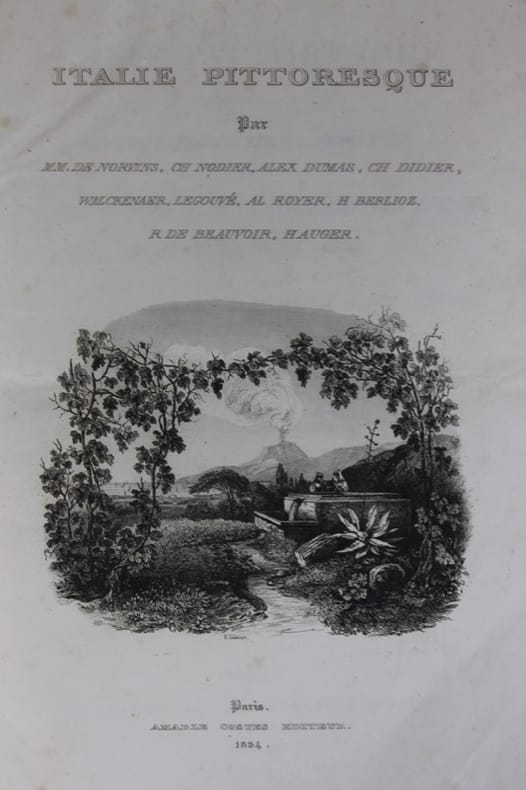 Édition originale de cette belle description de l'Italie par de grands auteurs romantiques : Norvins, Ch. Nodier, Alex. Dumas, Ch. Didier, Walkenaer, Legouvé, Al. Royer, H. Berlioz, R. de Beauvoir, H. Auge, abondamment illustrée d'après Forbin, Granet, Labrouste, etc. Bon état d’occasion