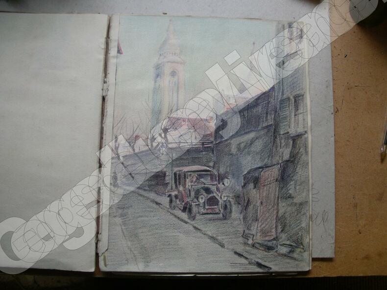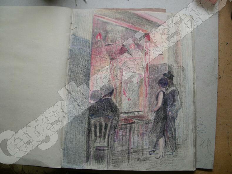Miron Duda né à Nowy-Senez (Pologne). De 1925 à 1929 il a exposé au Salon d'Automne, principalement des natures mortes. Album de croquis parisiens, certains très achevés : rue de Montmartre, intérieurs de cafés, "types" de la rue, acteurs, soldats, filles...