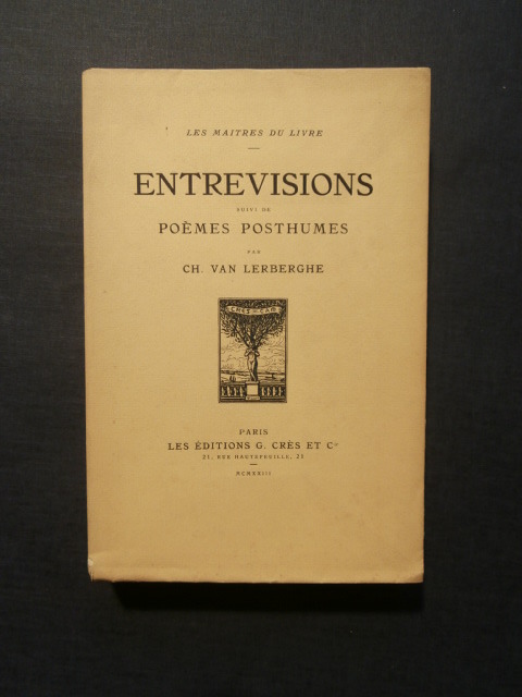 Les Editions Georges Crès et Cie, collection "Les maîtres du livre", Paris, 1923. In-8, broché sous couverture illustrée, 249 pp. Entrevisions - Jeux et Songes - Le jardin clos - Sous le portique - Pages retranchées et poèmes posthumes - Appendice : deux lettres de Charles van Lerberghe. - Note relative à cette édition.