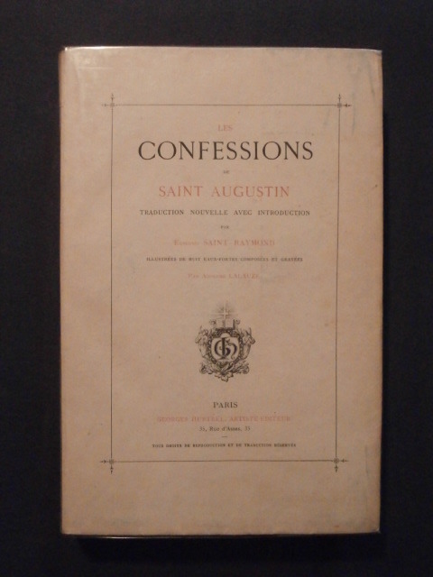 Jolie édition sortie des presses de l’imprimerie royale de la traduction préférée des Confessions de Saint Augustin. «Les Confessions avaient précédemment été traduites par Arnauld d’Andilly mais on préfère la traduction de Dubois» (Brunet, I, 561). «Ecrites au cours de l’une des périodes les plus dramatiques de l’histoire de l’humanité, les Confessions constituent la base de toute la pensée moderne. C’est une véritable épopée de la conversion chrétienne, résumée dans le drame intérieur d’un homme, drame dans lequel s’expriment tous les éléments passionnels et théoriques d’une telle expérience. Dans la littérature de tous les temps, rares sont les œuvres qui, comme celle-ci, montrent dans leur unité indissoluble, le développement d’une expérience spéculative en même temps que celui d’une expérience religieuse et humaine». (T.F. Œuvres Complètes, Vivès, 1869-1878). Superbe exemplaire, l’un des rares imprimé par l’imprimerie royale sur grand papier de Hollande, chacun des titres portant les armoiries gravées du roi Louis XV, revêtu de très élégantes reliures en maroquin vert olive à dentelle de l’époque.