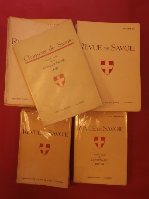 Collection complète de la revue de Savoie, publié entre 1941 et 1960 (avec un arrêt de publication entre 1947 et 1954). Bien complet du numéro spécial sur le centenaire du rattachement de la Savoie à la France, du dernier numéro sur les chansons de Savoie et du supplément réservé au abonnés dans le numéro de 1957, 4e trimestre sur les blasons de savoie (avec la planche polychrome). Belle ensemble rare de 47 revues. Bel ensemble malgré quelques salissures sur certains numéros.<br>