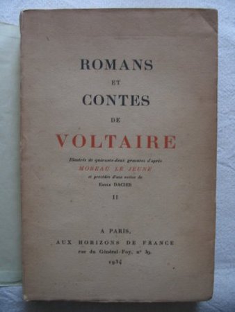 Illustrés de 42 gravure d'après Moreau le Jeune, précédé d'une notice d'Emile Dacier. Tome 2 seul. Pièce contenues dans ce volume : l'homme aux quarante écus - la princesse de Babylone - les lettre d'Amabed - histoire de Jenny - les oreilles du comte de Chesterfield - le taureau blanc - le crocheteur blanc - cosi-sancta - le songe de Platon - Bababec et les fakirs - aventure de la mémoire - les aveugles juges des couleurs - aventure indienne - voyage de la raison.