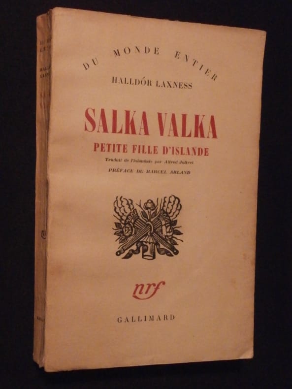 Paris Gallimard 1939 1 vol. relié in-12, demi-chagrin vert, dos à nerfs orné de fleurons dorés, pièces de titre, tête dorée, couverture et dos conservés, 255 pp. Traduction de l'islandais par Alfred Jolivet. Préface de Marcel Arland. 3e édition. Dos passé, sinon plaisant exemplaire dans une reliure du milieu du XXe siècle.