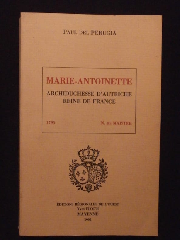 Il existe au moins deux tirages de la première édition de ce texte à la date de 1794 : une portant en toutes lettres le nom du chevalier de Mayer comme auteur (notre exemplaire) ; l'autre ne comprenant que la mention : par M. le chevalier de M***. Puis il y eut une seconde édition en 1795, conservant l'anonymat de l'auteur. Est-ce cette situation qui fit attribuer par Barbier l'ouvrage au chevalier Nicolas de Maistre (1756-1837), un des frères du pamphlétaire contre-révolutionnaire ? Sans doute était-ce un nom plus connu que celui du chevalier de Mayer (1751-1825), mais au témoignage de Lamartine, qui a connu toute la fratrie de Maistre, Nicolas, engagé dans la carrière des armes, était le seul de sa famille à ne pas écrire. Nous ne voyons donc pas de raison d'abandonner la paternité de ce texte au demeurant rare au chevalier de Malte.L'ouvrage, quant à lui, décrit le sort tragique de la reine.Barbier III, 70. Martin & Walter, 22 453 (suit l'attribution de Barbier). On trouve quelques notes sur Nicolas de Maistre dans la grande biographie de Robert Triomphe, mais elles sont éparses et peu disertes ; nous n'avons pu avoir accès à la notice de Vermale consacrée au personnage ; insérée dans le périodique Fert de 1930, elle semble peu accessible.Exemplaire de la famille du Pouget de Nadaillac (Périgord), avec marque "Virtus in haeredes" poussée en queue du dos. - - VENTE PAR CORRESPONDANCE UNIQUEMENT
