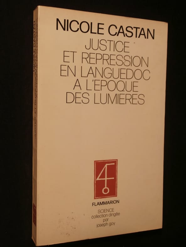 Thèse soutenue par Mme Nicole Castan, le 22 juin 1978, à l'Université de Toulouse-Le Mirail, devant un jury présidé par M. le doyen Jacques Godechot, et composé de MM. Albert Soboul, Pierre Chaunu, Jean Meyer et Bartolomé Bennassar. Unanime, le jury déclara Nicole Castan digne du doctorat es lettres, avec la mention très honorable. — "En cette fin du XVIIIe siècle, qu'espérer d'une justice criminelle qui ne pèse que pour 5 sols par habitant sur le budget de l'Etat, qui ne dispose d'aucune méthode de laboratoire pour interpréter les indices ne même de fichiers d'identité pour repérer les criminels, qui attend tout d'une observation directe, mais tardive, de ses petits juges et d'une sollicitation logique par l'interrogatoire ou l'audition des témoins ? Cette procédure a besoin de la relative faveur d'un public intéressé, mais elle reste assez redoutable par le manque de garanties qui entoure son instruction et la cruauté des peines qu'elle inflige pour dissuader petits et grands notables comme simples domiciliés, des excès de la vengeance privée ou de l'usurpation brutale . Elle rend la seule implication trop effrayante pour le sédentaire maître de quelques biens. Mais peut-elle faire face à une mobilité déferlante dans les dernières décennies du siècle parmi les désagrégations des communautés terriennes et la ruée des vagabonds en quête d'aventure ou d'emploi ? Telle est la question adressée par Nicole Castan à ce classique Midi des fortes structures juridiques, municipales et familiales. Elle y rencontre l'art traditionnel de régler les comptes sans offrir prise ni appel à la justice et les stratégies efficaces de l'investissement ou le l'obsession des tribunaux. Elle montre aussi une inertie et une diligence rigoureuses qui veulent contenir à peu de frais mais à grande peine les tensions de désordre, de désespoir et d'envie dans une société qui est restée sous la loi de l'héritage." — "Justice et répression. La justice de l'Ancien Régime est fréquemment absente. « Transiger à tout prix » est le premier commandement. La communauté, encore très soudée, est organisée pour se défendre elle-même. Le criminel qui lui appartient n'est pas dénoncé. L'arbitrage des entremetteurs naturels est souvent sollicité. L'origine sociale des entremetteurs est d'ailleurs pleine d'intérêt. L'arbitrage nobiliaire, observe Mme Castan, décline. « La puissance sociale de la noblesse change de base. Elle est fondée désormais tout autant sur la richesse que sur l'estime » (p. 31). On se fait très souvent justice soi-même. La communauté encourage, comprend et protège les justiciers. De même est ratifiée la vengeance d'un mari bafoué dans son honneur. Enfin la justice est invisible quand « l'exécution ne suit pas ». Le port d'armes est chose commune. Des tyranneaux de village terrorisent impunément. Sans parler du grand banditisme... (...) Mme Castan est une historienne sans préjugés. Elle ne cherche qu'une chose : comprendre le tout social, comprendre le corps politique dont tous les éléments sont solidaires. Il en résulte qu'elle jette une lumière très claire sur le tempérament de l'ancienne société française." (Jean de Viguerie, Annales de Bretagne et des pays de l'Ouest, 1981) — "Nous avons aussi déjà rendu compte ici de la brillante soutenance de thèse de Mme Castan. On regrettera évidemment que les nécessités de l'édition aient amené l'auteur à publier son travail en deux ouvrages séparés, chez deux éditeurs différents. On n'en omettra pas pour autant l'importance de cette publication, car l'ensemble constitue, comme l'a souligné Pierre Chaunu, qui préface “Les criminels de Languedoc : Les exigences d'ordre et les voies du ressentiment dans une société pré-révolutionnaire (1750-1790)” (Toulouse, Publications de l'Université de Toulouse-Le Mirail, 1980), une œuvre « extrêmement originale et neuve » qui « pour la première fois a osé attaquer nettement de front toute la continuité du conflit ». Le premier des deux ouvrages s'intéresse plus précisément, comme le montre son titre, aux mécanismes judiciaires ; le second aux criminels et à la criminalité. Le talent de Madame Castan a réussi à faire non seulement qu'ils sont d'une lecture aisée et d'un intérêt sans cesse soutenu, mais encore qu'ils se complètent parfaitement. On peut sans crainte parler de chefs-d'œuvre car il n'est plus désormais d'étude de la criminalité à l'époque moderne qui puisse se faire sans les utiliser comme point de départ et comme référence permanente." (Jean-Pierre Poussou, Annales du Midi, 1982)