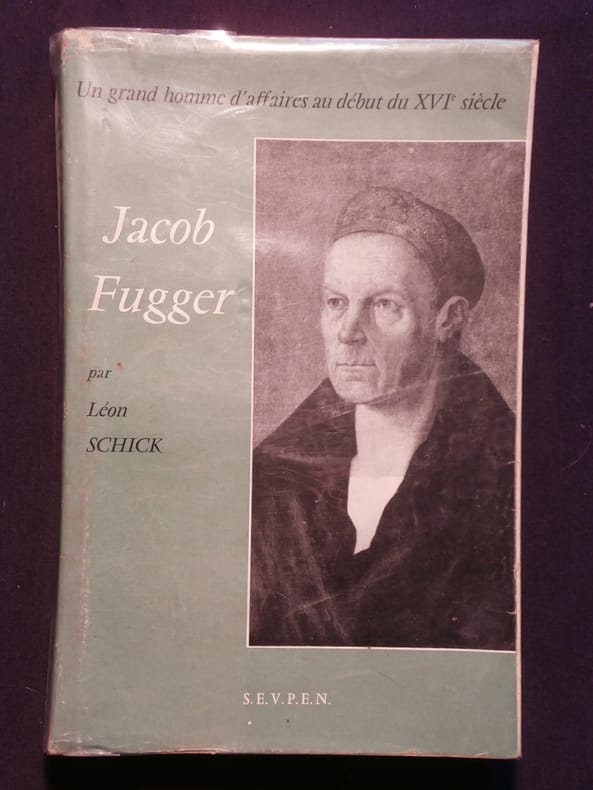 "Ce n'est pas un autre livre sur les Fugger, c'est une étude nouvelle des affaires de Jacob « le Riche ». L'auteur « avoue » avoir conçu et écrit cet ouvrage plus en homme d'affaires qu'en historien. L'histoire en est gagnante grâce à la maîtrise avec laquelle Léon Schick a réussi à « surprendre les gestes d'un technicien de l'argent aux prises avec des problèmes constants de l'argent ». La ville d'Augsbourg est présentée dans tout son éclat. (...) Léon Schick reste tout le long de son livre, attentif à l'œuvre du « meneur d'argent » et, eu égard aux vicissitudes du monde politique, il écrit avec humour que « les folies de celui-ci firent la sagesse de celui-là ». C'est dire que l'histoire des affaires est étudiée dans ce qu'ont voulu pour eux-mêmes les marchands et non dans ce qu'elle a permis aux seigneurs de la politique. Tout ceci : qualités d'érudition peu communes et vision nouvelle des problèmes, rend ce livre des plus suggestifs." (José-Gentil da Silva, Revue du Nord, 1957) — "Ce livre a de grands mérites. Non qu'il soit extraordinairement neuf : son information provient surtout d'ouvrages et d'éditions de sources allemands. Il s'y ajoute cependant quelques sondages dans les archives, surtout dans celles de la famille des Fugger. L'étude de M. Schick, bien faite, fera mieux connaître en France le rayonnement de la grande firme augsbourgeoise. (...) M. Schick est aussi un historien sensible aux facettes les plus diverses du XVIe siècle et à leur interaction..." (Jan Craeybeckx, Revue belge de philologie et d'histoire, 1959) Désormais les frais d'envoi sont de 6 € seulement pour les livres jusqu'à 1 kg (colissimo suivi), pour la France métropolitaine.